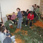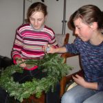 Wir freuten uns über den kleinen Ausflug und über das Kommen des Advents. In Wolkendorf waren die Tannenäste bereits geschnitten. Draht war auch vorhanden und Lust fürs Binden war auch da. Während die Jungs das Draht vorbereiteten, schnitten die Mädchen kleine Ästchen für die Kränze. Die runden Weidenruten mussten nur noch mit Tannenzweigen bekleidet werden.