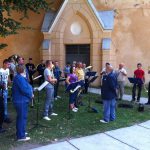 Vergangenen Sonntag waren Vertreter des Deutschen Forums aus Bistritz und dessen Kulturgruppen, der Handarbeitskreis, die Tanzgruppe "Regenbogen" sowie die Bistritzer Blaskapelle "Harmonie" zu Gast in unserem Gottesdienst. Im Anschluss gab es bei herrlichem Wetter, Tee, Kaffee und Baumstriezel ein Platzkonzert, das vielen Zeidnern und Zeidnerinnen eine große Freude bereitet hat. Der Besuch der Kulturgruppen des Bistritzer Forums fand im Rahmen des XXI. Sachsentreffens, das am 17.09.2011 in Kronstadt stattgefunden hat und stellt hoffentlich auch die Basis einer zukünftigen Beziehung und Kooperation zwischen den Kulturgruppen beider Ortschaften, Zeiden und Bistritz.