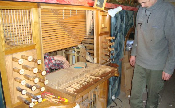 Die Zeidner Prause Orgel wir für die nächste Zeit verstummen. Elemente der Mechanik wurden ausgebaut, um den Weg der Restauration anzutreten.