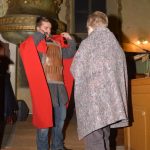 Pfarrer Andreas Hartig betonte in seiner Ansprache wie wichtig das Teilen ist und es gelang ihm auch diesmal mit interaktivem Dialog sogar die Aufmerksamkeit der kleinsten Kinder auf sich zu ziehen. Zum Ausgang erhielten je zwei Kinder einen Kipfel zum teilen, so wie es Sankt Martin mit dem armen Bettler vorgemacht hatte. Das Besondere an diesem Abend blieb nicht aus: alle Kinder hatten fleissig Laternen gebastelt. Die wurden anschließend angezündet und während des Laternenumzugs um die Kirchenburg mit fröhlichem Gesang und Akkordeonbegleitung, stolz präsentiert.