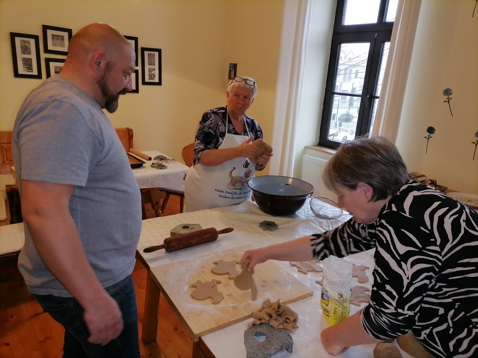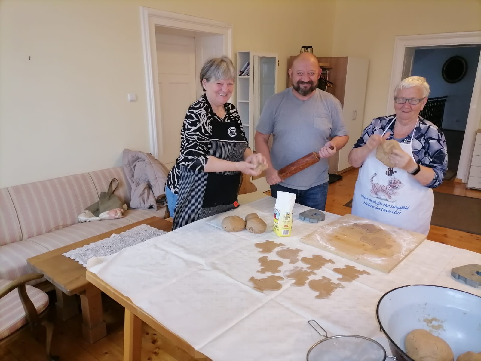 Joi după-amiază, tinerii s-au adunat în bucătăria parohiei dotati cu glazură, Streusel și tot ce este necesar pentru a împodobi turta dulce.