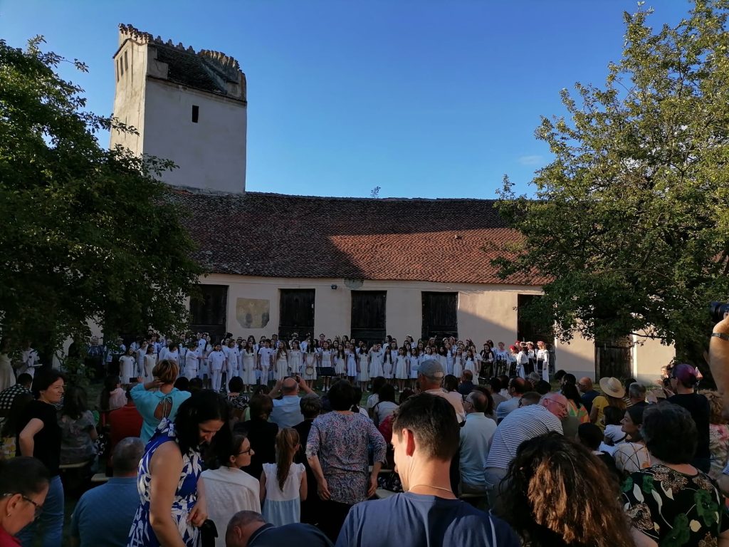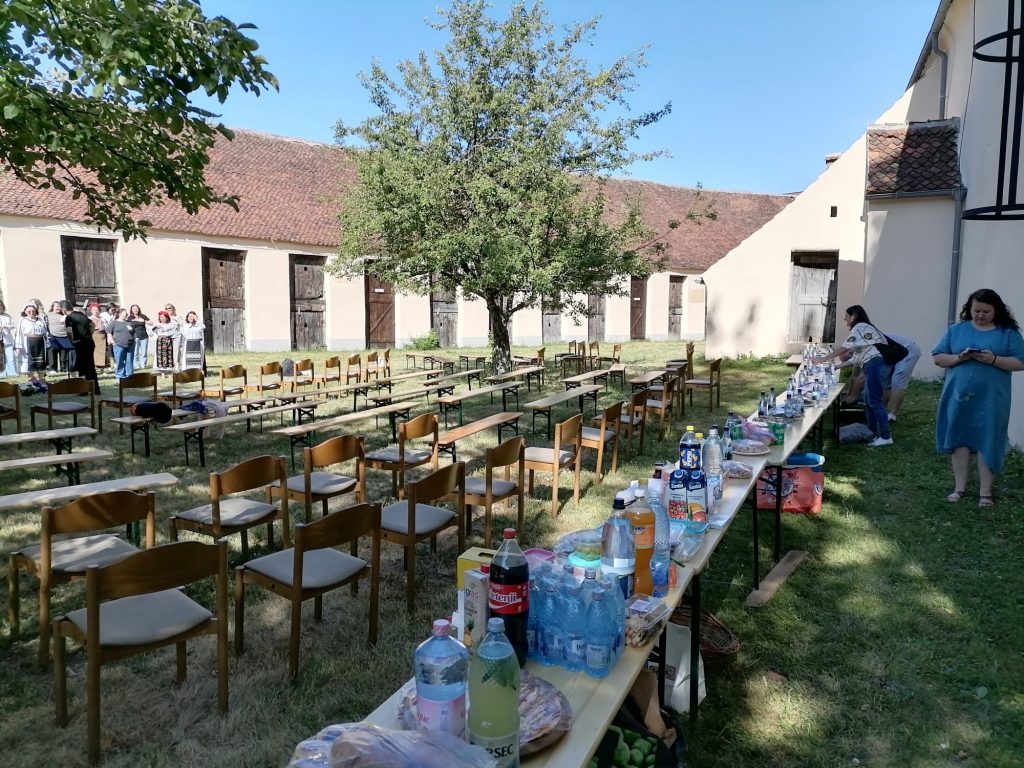 Nach dem Konzert fand der Abend in entspannter Atmosphäre im Innenhof der Kirchenburg statt, wo viele Teilnehmer zum geselligen Beisammensein blieben. In warmer und freundlicher Atmosphäre wurde eine Auswahl an süßen und herzhaften Snacks serviert, die von Freiwilligen sorgfältig zubereitet wurden. Es war ein Moment der Verbundenheit zwischen Künstlern, Organisatoren und Publikum – eine natürliche Fortsetzung des Gemeinschaftsgefühls, das die gesamte Veranstaltung prägte.
