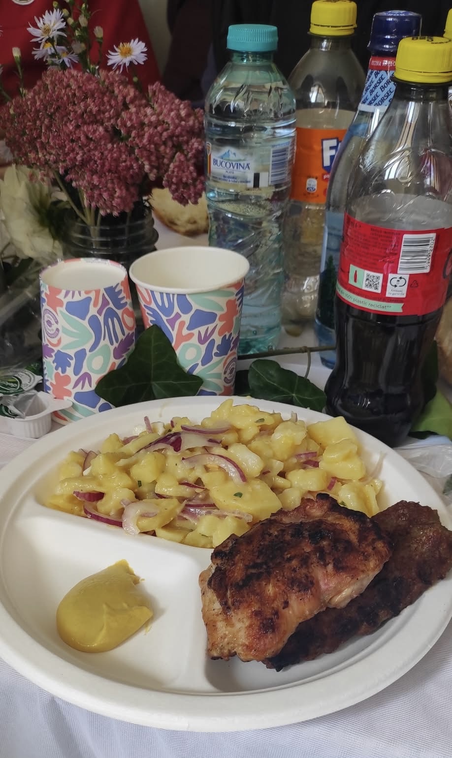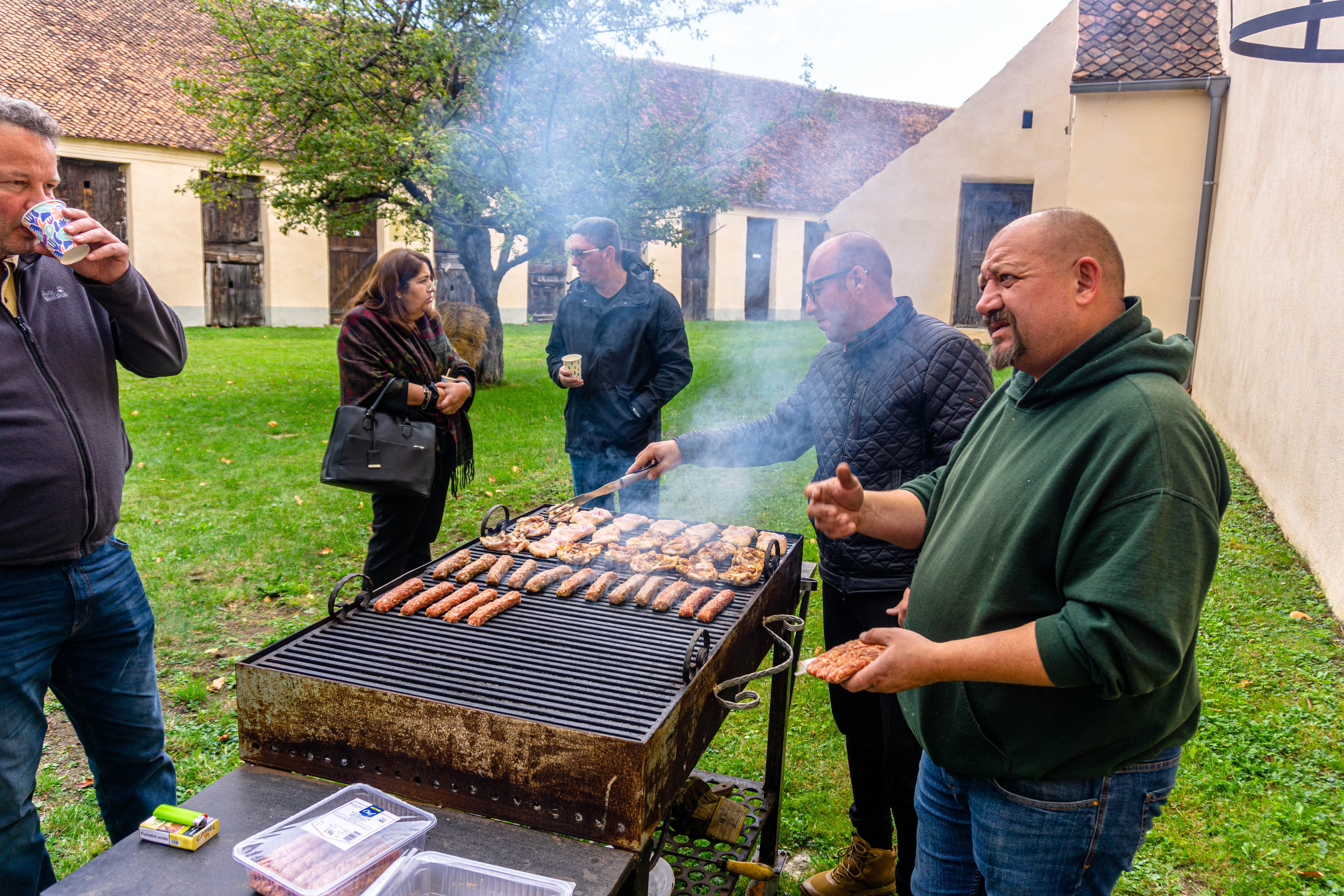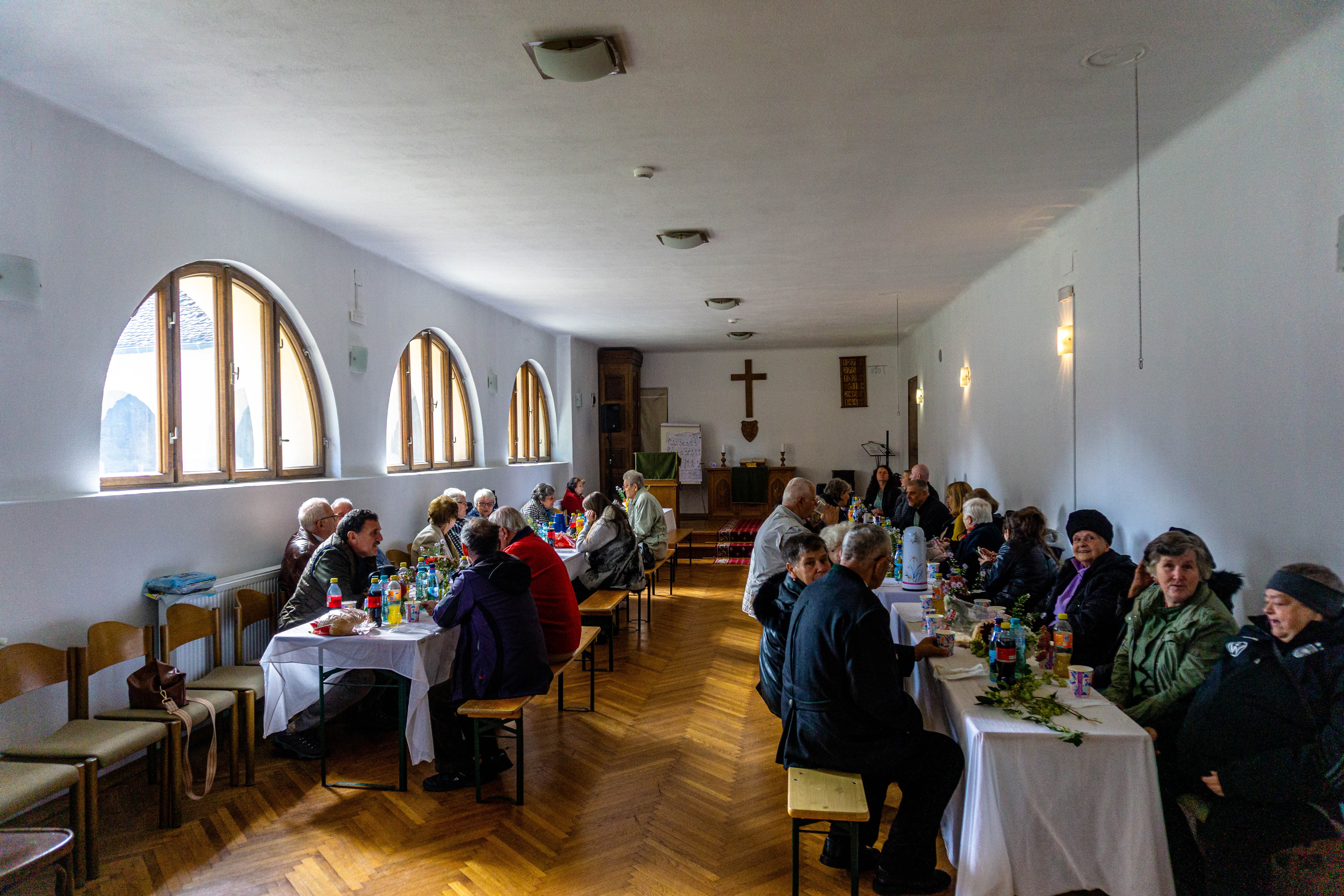 După slujbă, curtea bisericii și sala de reculegere au găzduit o după-amiază plină de voie bună. Grătarul, salata de cartofi după rețeta tradițională și desertul Baumstriezel au adus gustul autentic al sărbătorii. Conversațiile, revederile și poveștile au făcut ca atmosfera să fie una caldă și prietenoasă, în ciuda vremii răcoroase.