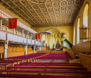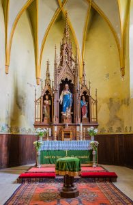 Der vom Frauenverein gestiftete neugotische Altar stammt ebenso wie das neugotische Taufbecken von 1904. Die Kanzel wurde 1841 gebaut.